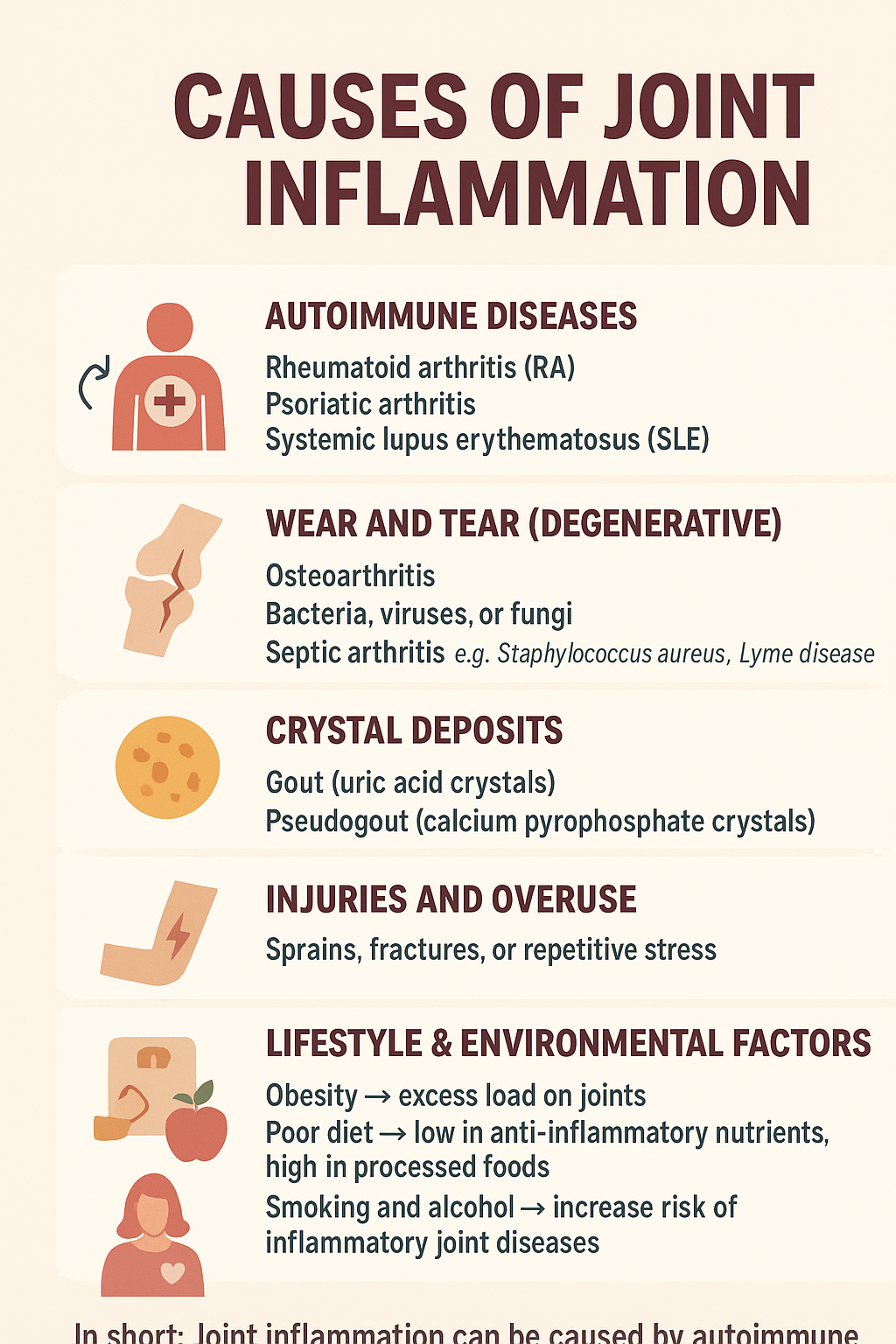 Rheumatoid arthritis is an autoimmune disease, This occurs when the immune system begins attacking the cartilage and the synovial lining of the joint. As a result, an unbalanced inflamatory process begins signicant destruction of the healthy tissue.
